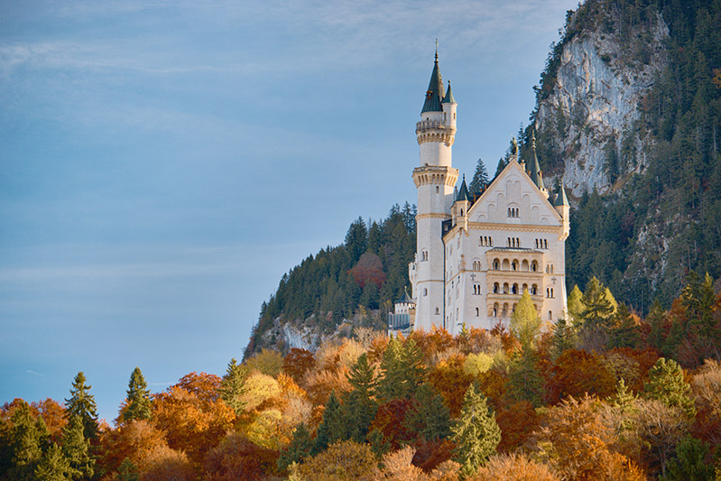 ภาพแรกสำหรับใบไม้เปลี่ยนสีที่เยอรมนี คงหนีไม่พ้นแคว้นบาวาเรีย (Bavaria) โดยเฉพาะปราสาทนอยชวานสไตน์ (Neuschwanstein Castle) ปราสาทต้นแบบของเทพนิยาย และนิทานที่แสนสวยงาม ยิ่งในช่วงใบไม้เปลี่ยนสีบรรยากาศจะยิ่งงดงามมากเป็นพิเศษด้วยต้นไม้ใบไม้ที่ล้อมรอบปราสาทจะเปลี่ยนเป็นสีเหลือง แดง ส้ม และน้ำตาล ตัดกับสีขาวของปราสาท ทำให้ทัศนียภาพบริเวณเทือกเขาแอลป์แห่งบาวาเรียยิ่งดูงดงามราวกับภาพวาด