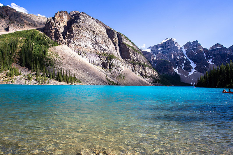 ทะเลสาบแสนสวยภายในอุทยานแห่งชาติแบมฟ์ที่มีชื่อเสียงในเรื่องน้ำใสราวกับอัญมณีสีมรกต เขียวอมฟ้าที่เกิดจากธารน้ำแข็งซึ่งรายล้อมไปด้วยยอดเขาสูง มองเห็นปราสาทอันสง่างาม และมีธารน้ำแข็งวิกตอเรียเป็นฉากหลัง ได้ชื่อว่าเป็นอุทยานธารน้ำแข็งขนาดใหญ่อันดับหนึ่งในทวีปอเมริกาเหนือ บนพื้นที่มากกว่า 6,641 ตารางกิโลเมตร ทะเลสาบที่มีความยาวถึง 2.5 กิโลเมตร มีความลึกสูงสุด 90 เมตร ล้อมรอบไปด้วยแนวของเทือกเขาร็อคกี้ เมาท์เทน (Rocky Mountains) สูงกว่าระดับน้ำทะเล ราว 1,730 เมตร จะมีลักษณะสำคัญ คือ ผืนน้ำที่เป็นสีฟ้ามรกต หรือสีเทอร์ควอยซ์ใสสะอาด