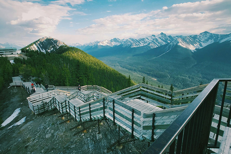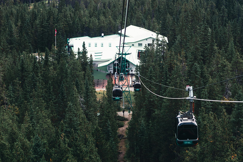 มาถึงแบมฟ์แล้วต้องไม่พลาดที่จะขึ้นกระเช้า Banff Gondola อยู่ไม่ไกลจากทะเลสาบโบว์มากนัก มีป้ายบอกตลอด เราขึ้นกระเช้า ไปชมวิวยอดเขาซัลเฟอร์ (Sulphur Mountain) แห่งเทือกเขาแคนาเดียนร็อกกี (Canadian Rockies) กัน ซึ่งภูเขานี้คือจุดเริ่มต้นของแบมฟ์ ด้านบนเขาวิวสวยงามมาก คุณจะเห็นวิว 360 องศา ของแนวป่าสนอันอุดมสมบูรณ์แห่งเทือกเขาที่โอบล้อมเขตเมืองไว้ทั้งหมด