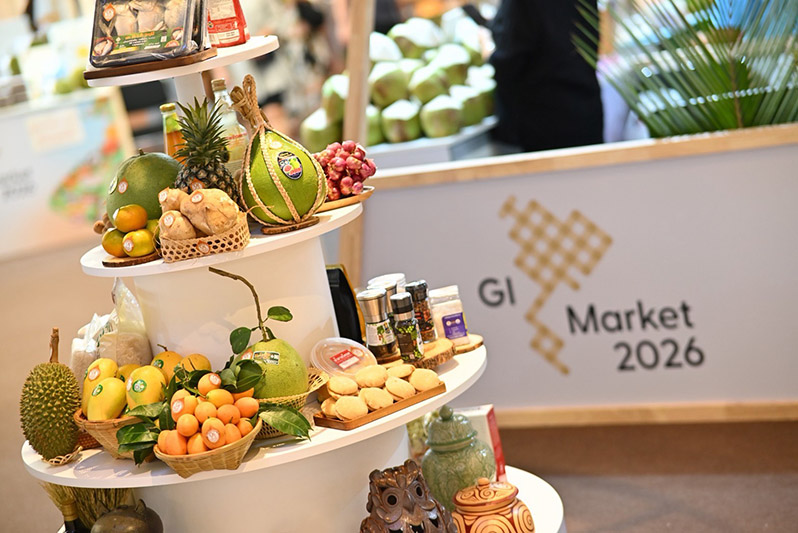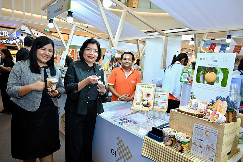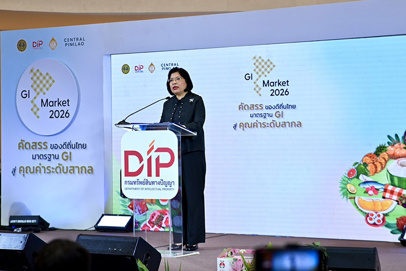 นางอรมน ทรัพย์ทวีธรรม อธิบดีกรมทรัพย์สินทางปัญญา เปิดเผยว่า กรมทรัพย์สินทางปัญญา กระทรวงพาณิชย์ ให้ความสำคัญกับการยกระดับศักยภาพสินค้า GI ซึ่งเป็นสินค้าอัตลักษณ์ท้องถิ่นที่เชื่อมโยงกับลักษณะทางภูมิศาสตร์ ทั้งดิน น้ำ อากาศ และภูมิปัญญาของชุมชน ทำให้มีความโดดเด่นทั้งด้านคุณภาพและเรื่องราวที่แตกต่างจากสินค้าทั่วไป โดยปัจจุบันมีสินค้า GI ไทยที่ขึ้นทะเบียนแล้ว 254 รายการ สร้างมูลค่าทางเศรษฐกิจกว่า 1.15 แสนล้านบาท ทั้งนี้ การส่งเสริมช่องทางการตลาดผ่านการจัดงาน GI Market ถือเป็นอีกหนึ่งกลไกสำคัญที่ช่วยเพิ่มขีดความสามารถในการแข่งขันและขยายโอกาสทางการค้าให้สินค้า GI เข้าถึงกลุ่มผู้บริโภคคนเมืองและตลาดที่มีกำลังซื้อสูง