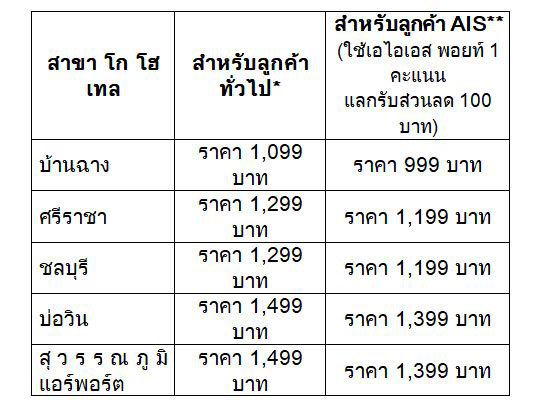 • จองตรงกับทางโรงแรม GO Hotel เท่านั้น ที่