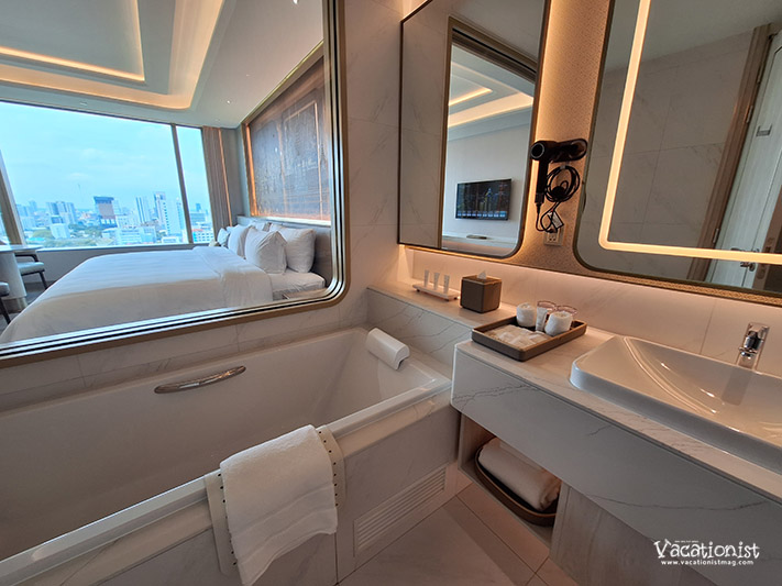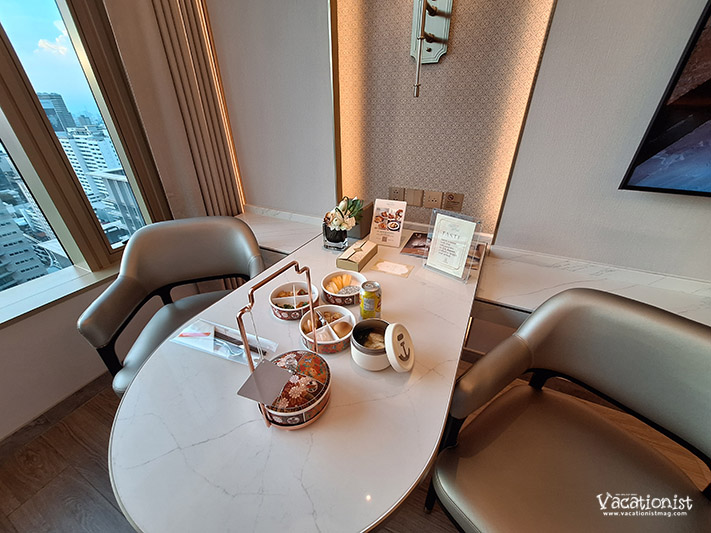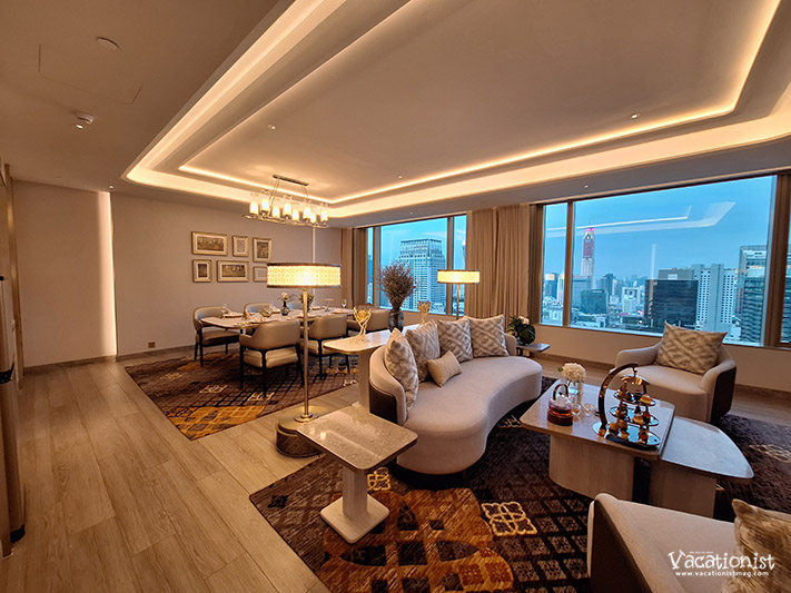 ห้อง Prestige Suite ขนาด 85 ตร.ม. เตียงคิงไซส์ มีพื้นที่นั่งเล่นส่วนตัว ทีวี LED ขนาดใหญ่ พื้นที่รับประทานอาหารพร้อมไมโครเวฟ โต๊ะทำงาน และวิวเมือง นอกจากนี้ยังมีห้องอาบน้ำแยกและอ่างจากุซซี่อีกด้วย