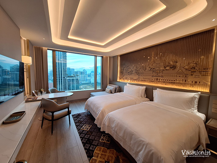 ห้อง Prestige Signature ขนาด 45 ตร.ม. เตียงคิงไซส์หรือเตียงแฝด พร้อมด้วยความสะดวกสบายทางเทคโนโลยีที่ทันสมัยและทิวทัศน์เมือง
