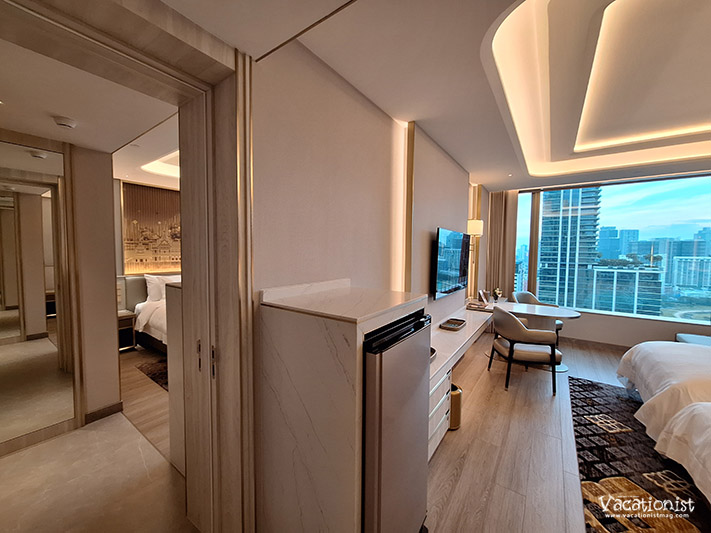 ห้อง Prestige Signature Connecting ขนาด 90 ตร.ม. เหมาะสำหรับครอบครัวหรือการเข้าพักระยะยาว โดดเด่นด้วยห้องเชื่อมต่อ พื้นที่อ่างล้างหน้าคู่ และการตกแต่งอย่างพิถีพิถัน