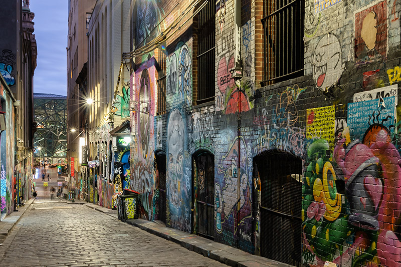 ถนนสายเล็กๆ ที่ติดโผจุดเช็กอินสุดฮิตเรื่องของสตรีทอาร์ต ถนนสายนี้เป็นส่วนหนึ่งของโครงการ City Lights เมื่อปี ค.ศ. 1998 ซึ่งริเริ่มโดย Andrew Mac ซึ่งต้องการสร้างนิยามใหม่ของคำว่า “หอศิลป์” และปรับเปลี่ยนเส้นทางเดินเท้าบางส่วนของเมลเบิร์นให้กลายเป็นแกลเลอรีศิลปะที่เปิดให้ศิลปินท้องถิ่นและศิลปินจากนานาชาติได้สร้างสรรค์ผลงานศิลปะบนถนนทอดยาวระหว่างถนน Flinders Street และ Flinders Lane ทั้งเส้นนั้นเต็มไปด้วยผลงานศิลปะสีสันโฉบเฉี่ยวบนผนังอาคาร นอกจากนี้บริเวณรอบๆยังเต็มไปด้วยร้านอาหาร คาเฟ่ รวมถึงบาร์ซึ่งเป็นจุดนัดพบยอดนิยมอีกจุดหนึ่งของชาวเมลเบิร์นและนักท่องเที่ยว
