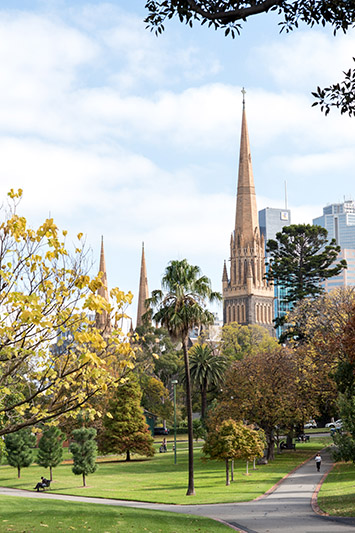 ตั้งอยู่ตะวันออกของกรุงเมลเบิร์นเป็นมหาวิหารนิกายโรมันคาทอลิคที่โดดเด่นทางสถาปัตยกรรมสไตล์ฟื้นฟูโกธิค (Gothic-revival Architecture)หลังคายอดแหลมสูงเทียมเมฆ เพดานสูงทรงโค้งแหลมงดงามสะกดสายตา กระจกสีที่บอกเล่าเรื่องราวทางศาสนา และกระจกบานยักษ์ที่แสงอาทิตย์ลอดผ่านจนย้อมภายในของตัวโบสถ์ให้สว่างไสวไปด้วยแสงสีทองอร่าม สร้างด้วยหินบลูสโตนหรือหินสีเทาอมน้ำเงินและหินทราย ใช้เวลาในการก่อสร้างยาวนานถึง 81 ปี จนเสร็จสมบูรณ์ในต้นศตวรรษที่ 20 ในปัจจุบัน มหาวิหารเซนต์แพทริคยังคงเป็นโบสถ์ที่สูงที่สุดและมีพื้นที่กว้างขวางที่สุดในประเทศออสเตรเลีย ถือเป็นศาสนสถานสำคัญของชาวคาทอลิกในออสเตรเลีย