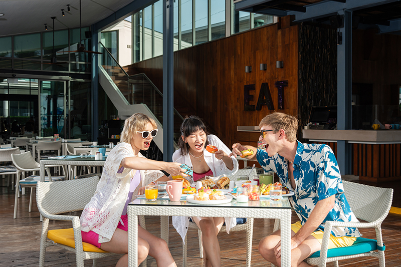 • “โวยาเจอร์ คาเฟ่” (Voyager Café) คาเฟ่บรรยากาศสบายที่เสิร์ฟเครื่องดื่มคุณภาพหลากหลาย ตั้งแต่กาแฟ ชาพรีเมียมไปจนถึงเมนูรีเฟรชระหว่างวัน พร้อมเบเกอรี่อบสดใหม่ เหมาะสำหรับนั่งพักผ่อนริมชายหาดตลอดทั้งวันในบรรยากาศผ่อนคลายสุดอบอุ่น